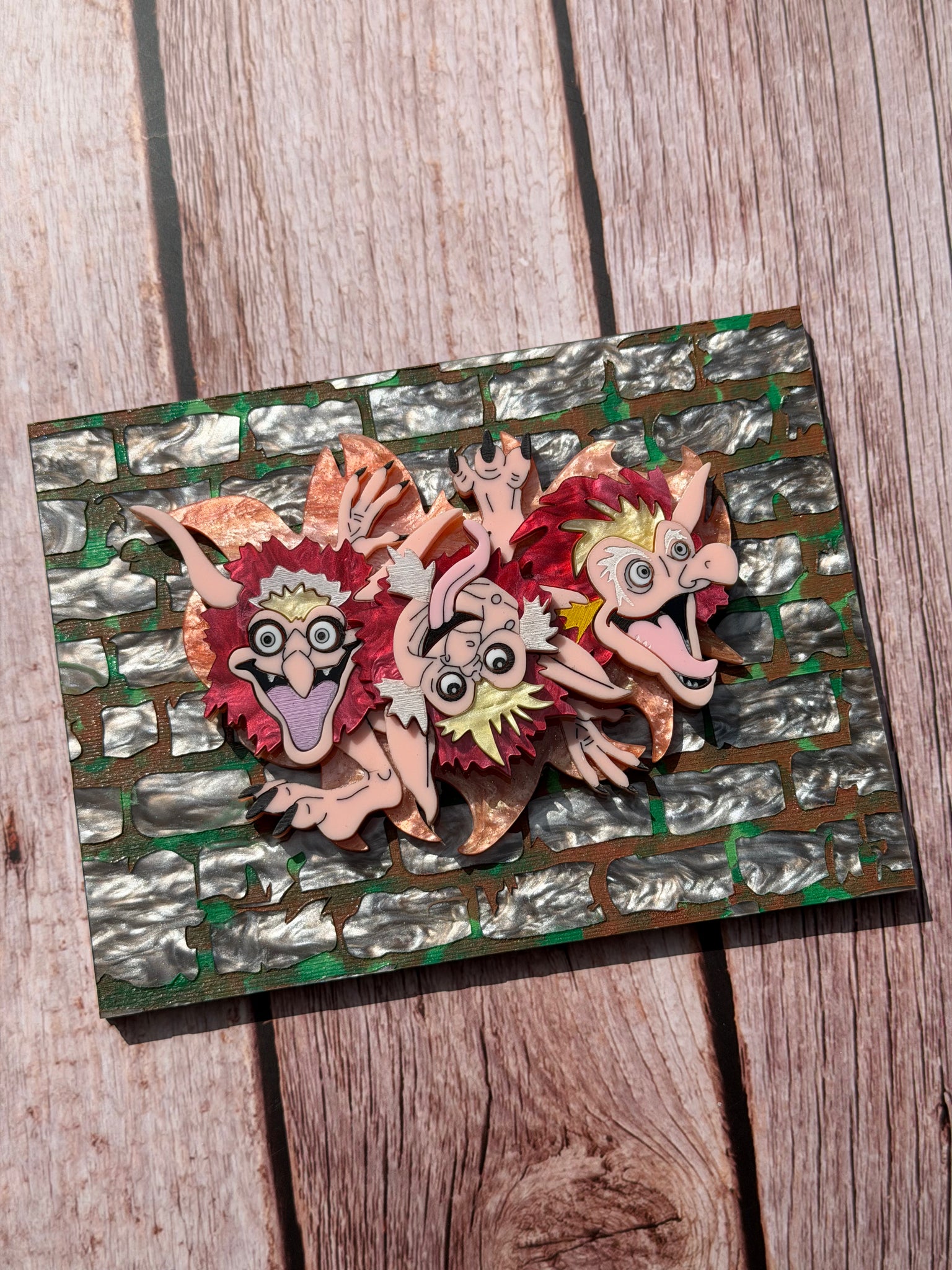 3 layer laser cut acrylic with engraved, hand painted and sealed detail
