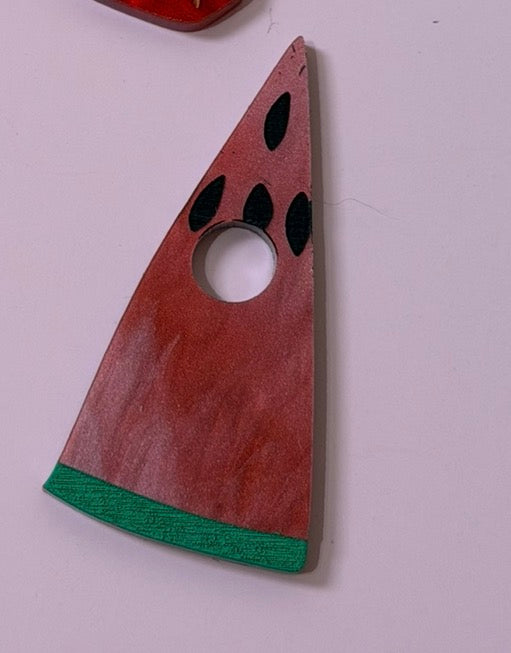 Fruit are single layer (Orange, strawberry, cake, cupcake, cheese and ice cream have 2) Gorgeous acrylics, with engraved and hand painted details