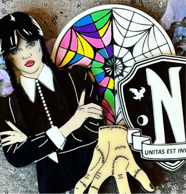 5 Layers of Laser Cut Acrylic with engraved and hand painted detail.