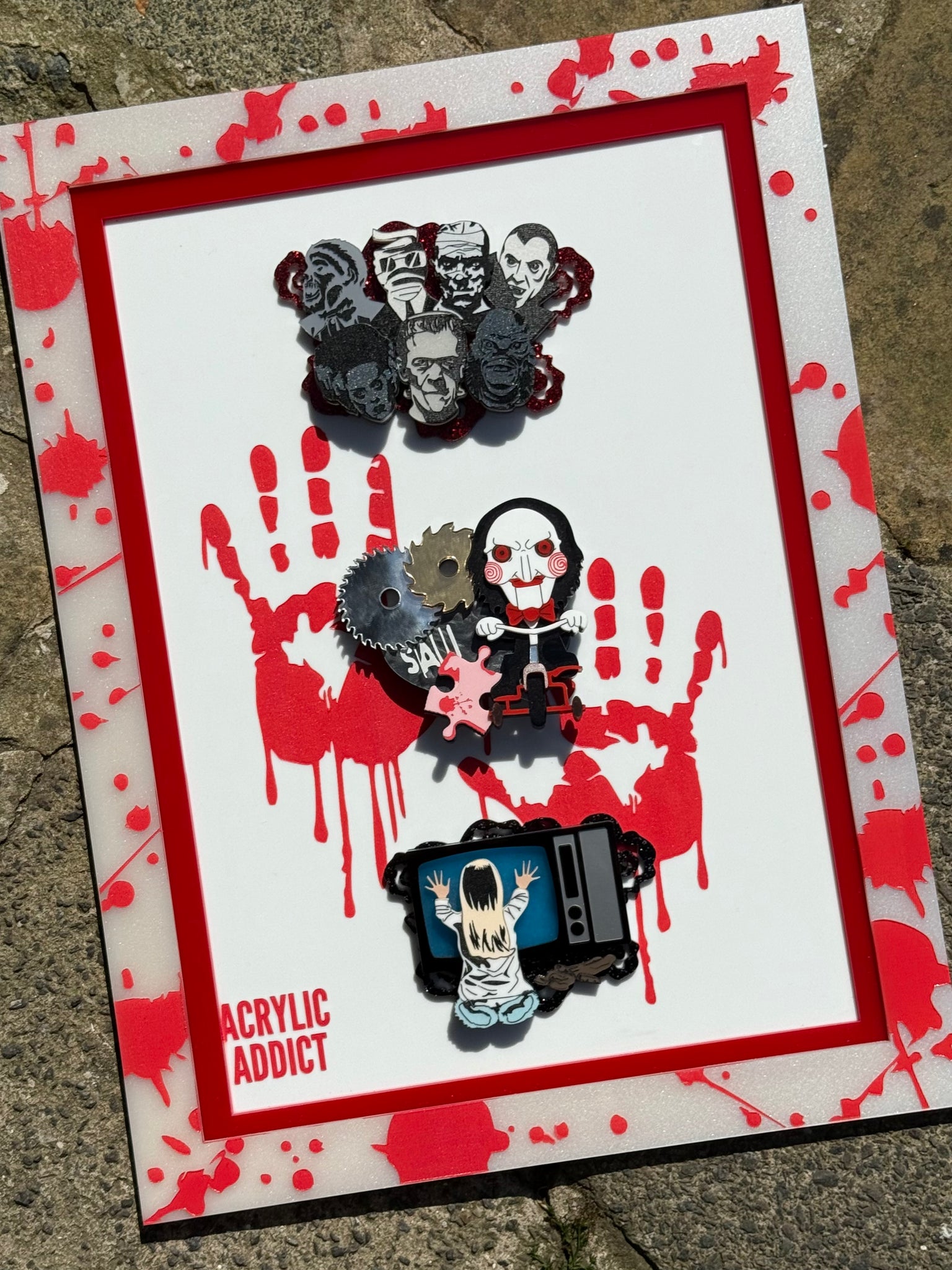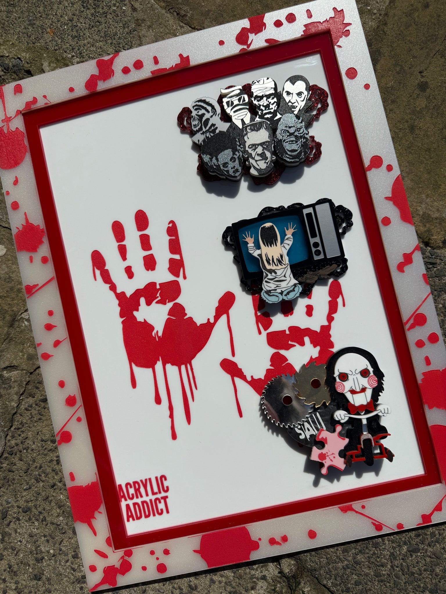 2 layer laser cut acrylic with engraved, hand painted and sealed detail